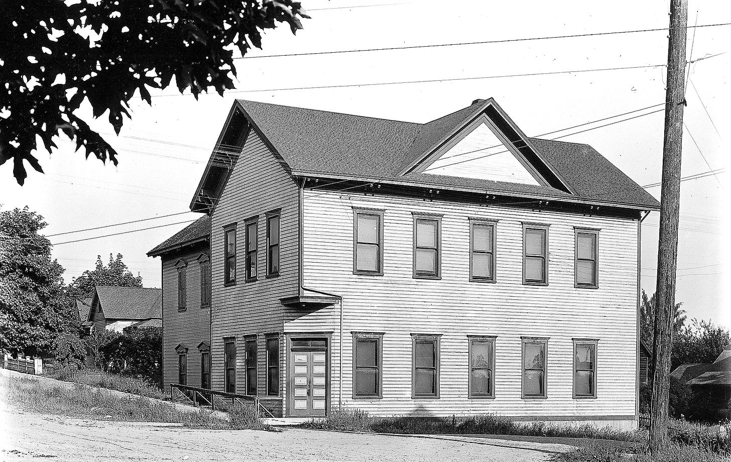 About the NOW photograph: The lot was sold by neighbor Joe Getchell to fellow lodge members for $100 in 1878. Today, the value is listed at $160,000 on the Snohomish County Assessors website.