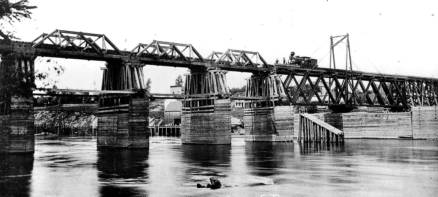About the THEN photograph: The first railroad. bridge to cross the Snohomish River into Snohomish city was completed in September 1888. Since the previous July, service ended south of town and passengers used the ferry at Avenue D to reach the town. (Courtesy UW Special Collections 18022.)